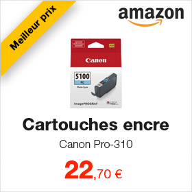 La nouvelle Canon ImageProGraph Pro-310 donne accès aux magnifiques qualités de la grande Pro-1100 dans un format moins encombrant. Au programme : durée de vie de ses encres, possibilité de tirages panoramiques (sans roller cependant) mais surtout, pour ceux qui impriment en N&B sur papiers mats, sa Dmax revue à la hausse... comme sa concurrente voire plus et une très grande neutralité ! Plus que jamais un produit coup de cœur par la qualité d'impression mais pas par le coût d'utilisation, toujours très élevé dans ce format - Lire ma conclusion